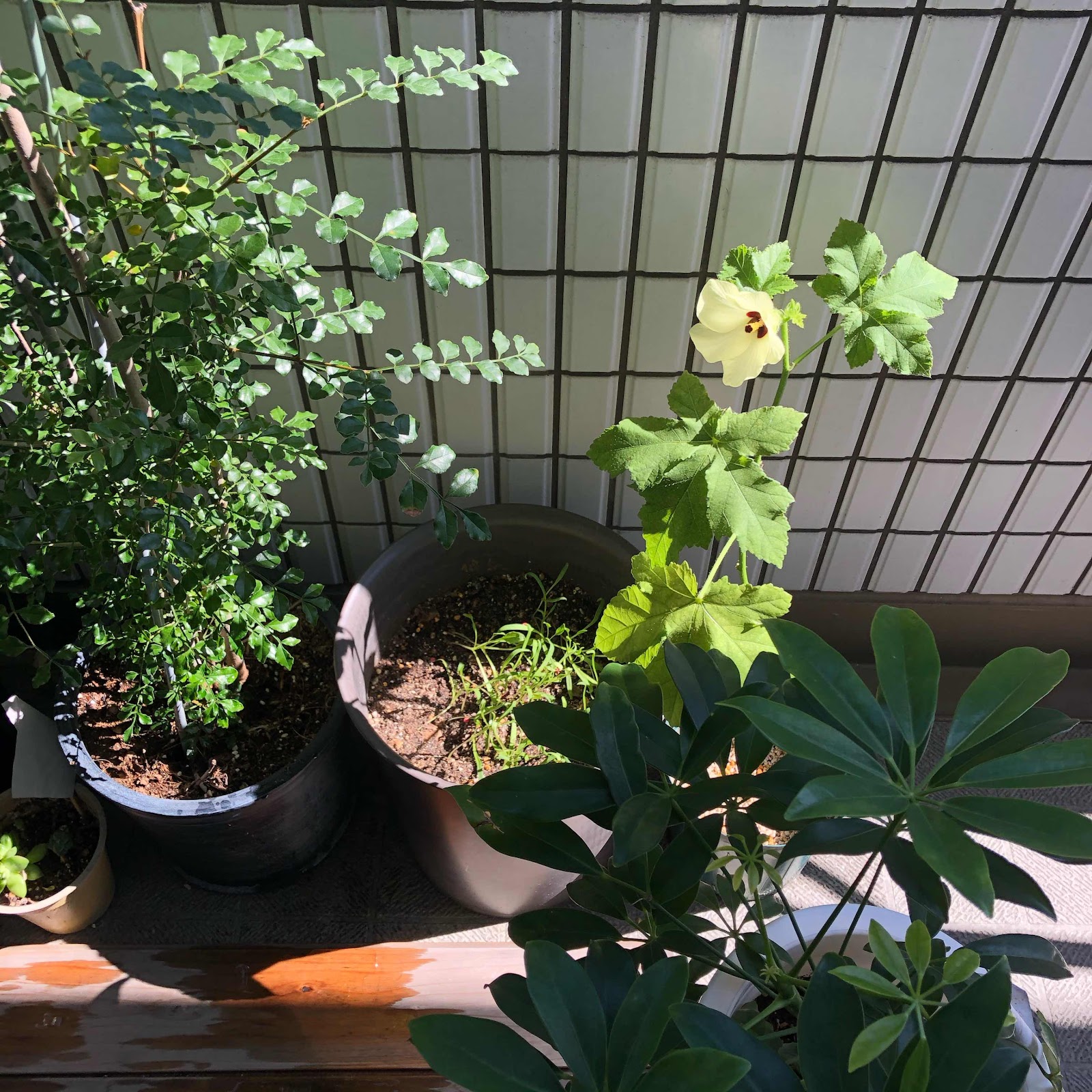 友人が種から育てたオクラに花が咲きました