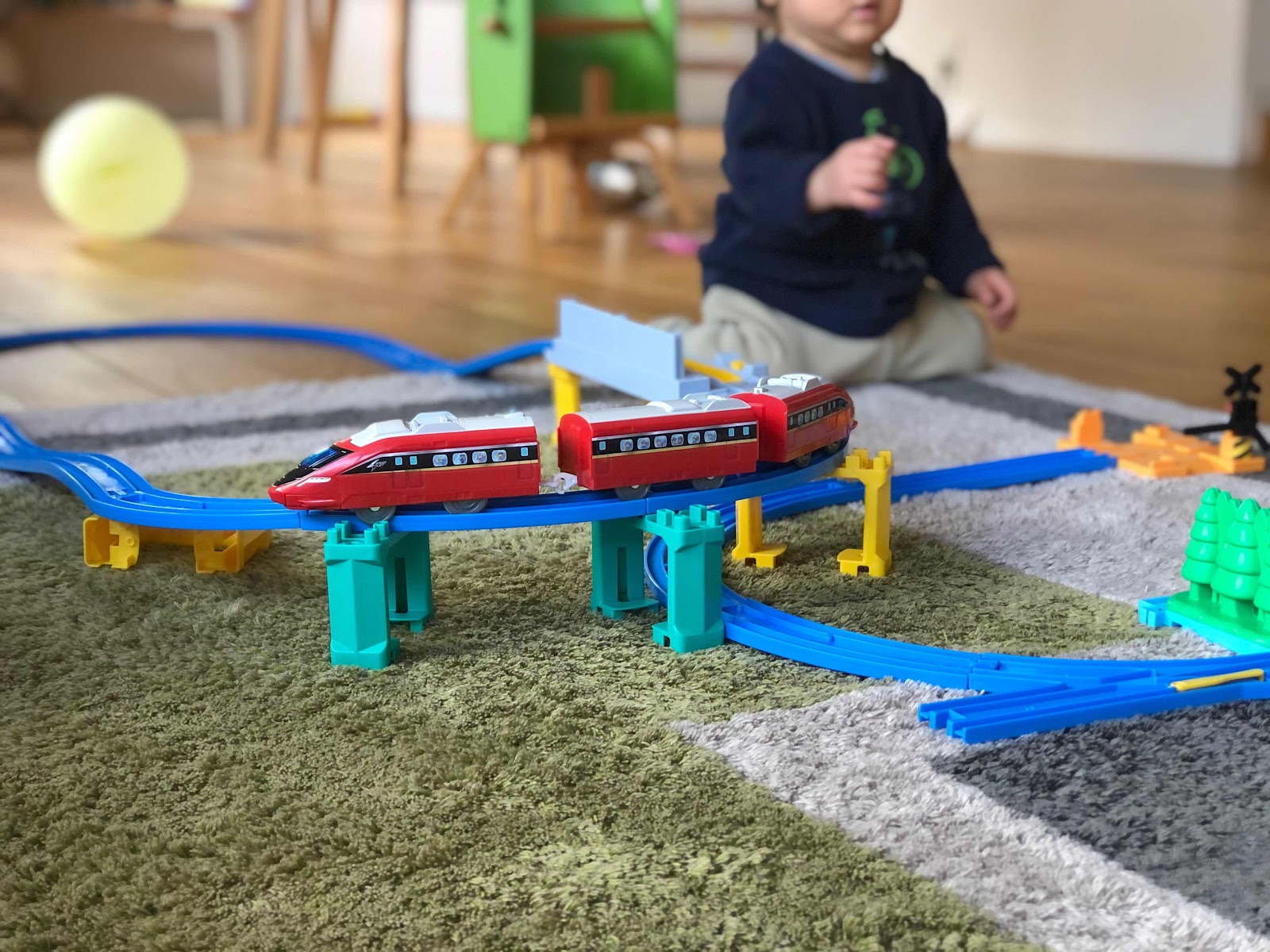 息子くんのオムツを替えつつ、着替えつつ、プラレールに30分ほど付き合う。