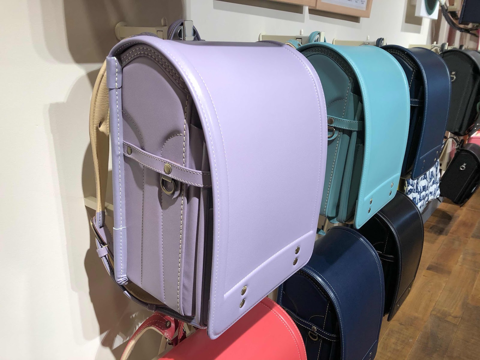 前日の夜もワクワクで眠り、当日の朝もすくっと起きて「今日は何の日だっけ?ランドセルを見に行くんだよね〜!!!」とワクワクが止まらない様子。店内に入った途端、気になるものをどんどん背負っておりました。
