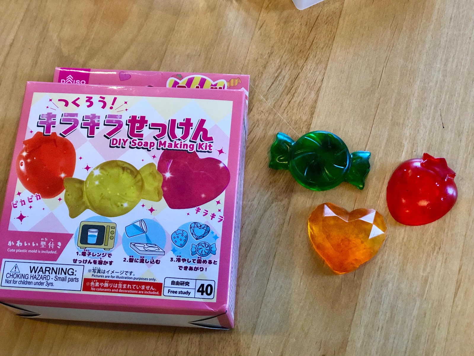 とっても簡単にきらきら石鹸ができました!キットものってうまくいかないものもあるのですが、これは簡単にできたのでおすすめです。